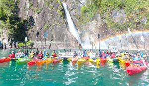 Más de 30 kayakistas remaron en protesta por construcción de central en río Manso
