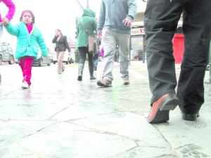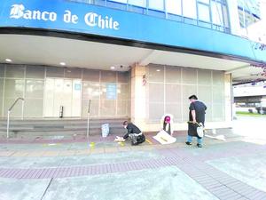 Voluntarios marcan veredas para determinar el distanciamiento social