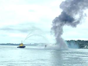 Pescadores solidarizan con tripulación de una lancha que se incendió en el canal de Chacao