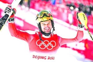 Johannes Strolz saluda a su padre tras igualar su logro en Juegos de Beijing