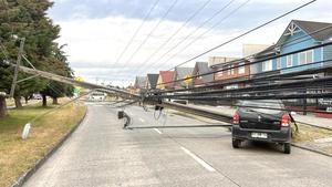 Chofer choca y quiebra un poste, el que derribó otros cinco en cadena