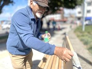 Pintor local renovó las bancas rayadas de la plaza de Puerto Montt: buscar concientizar