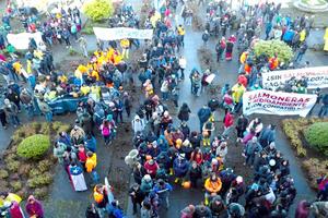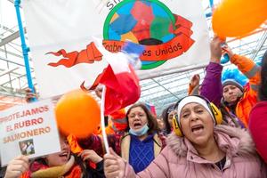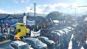 Masiva protesta de trabajadores del salmón llenó calles de Puerto Montt
